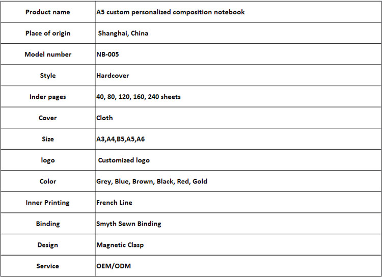 *This notebook accepts customization of size, color, material, inner page and brand.