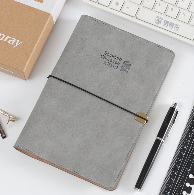 A5 soft cover leather business notepad with elastic strap
