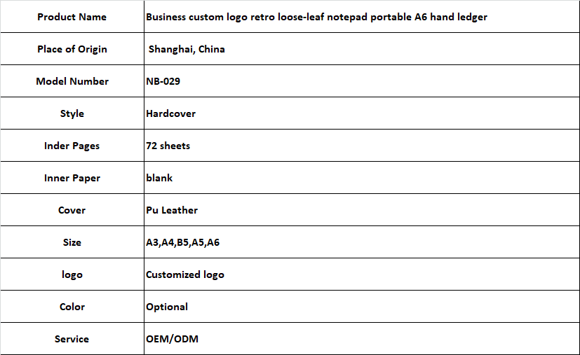Business custom logo retro loose-leaf notepad portable A6 hand ledger